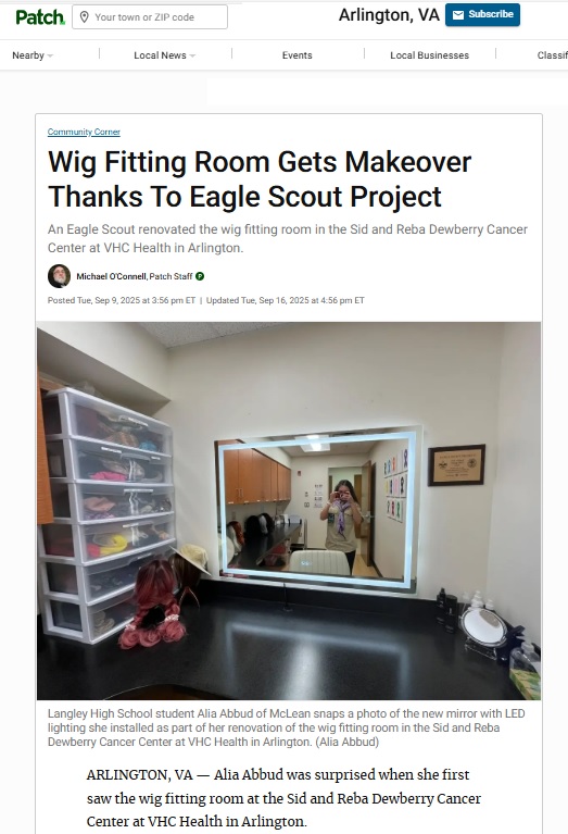 Arlington Patch featured a … [Read More...] about Eagle Project Renovates Cancer Center’s Wig Fitting Room