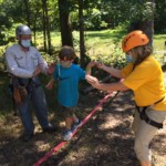 So then I had to test it, but I didn’t know any high buildings or bridges that I could use. So then Ms. Trisha told me perhaps I could do it from the COPE wall at Camp Snyder and I said YES PLEASE! On Saturday we drove to Camp Snyder in Haymarket, Virginia and Ms. Trisha asked Mr. Waisanen, the NCAC COPE & Climbing Chair, if I could do my project and he said yes. We had to figure out how to drop it and how to collect the data I needed for the requirements. There was another adult, Mr. Lesko, who talked to me about how to throw or drop the parachute from the 24’ high tower. I chose static drop, because that was easier and more reliable for